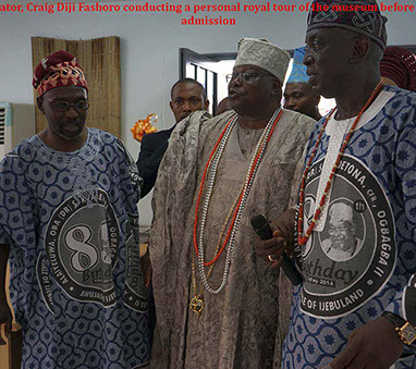 In May 2014, the longest reigning Yoruba monarch, Alaiyeluwa, Oba (Dr.) S.K. Adetona, the Awujale of Ijebuland, turned 80 years old. To celebrate the auspicious occasion, the Council of High Chiefs (Otunbas), on behalf of other Ijebu kings and citizens of Ijebuland decided to build a modern museum as a tribute to their beloved monarch. The distinct honor of founding the historical museum was invariably entrusted to Craig Fashoro, based on his accomplishments in the field of traditional African art and his proposed vision of what the desired museum should be like.