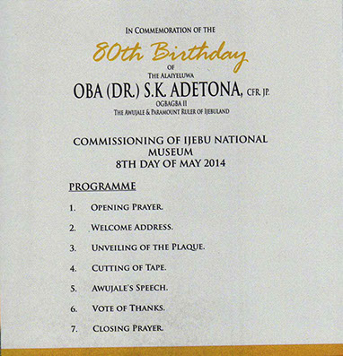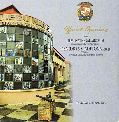 The Ijebu National Museum, officially opened with international pomp and fanfare, on time and within budget, on the 8th of May, 2014.